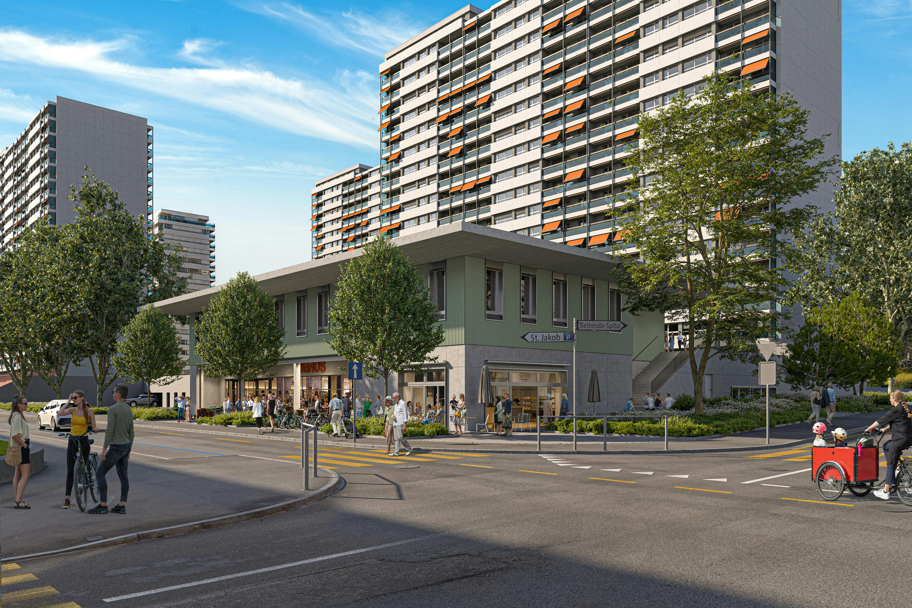 An der Lehenmattstrasse 260 entsteht ein moderner Neubau, der in Zukunft ein Lebensmittelgeschäft, eine Bäckerei und andere Geschäfte und Dienstleister unter einem Dach vereinen wird. Dank dem vielseitigen Angebot entsteht ein neuer Treffpunkt für die Bewohner*innen des Quartiers.
